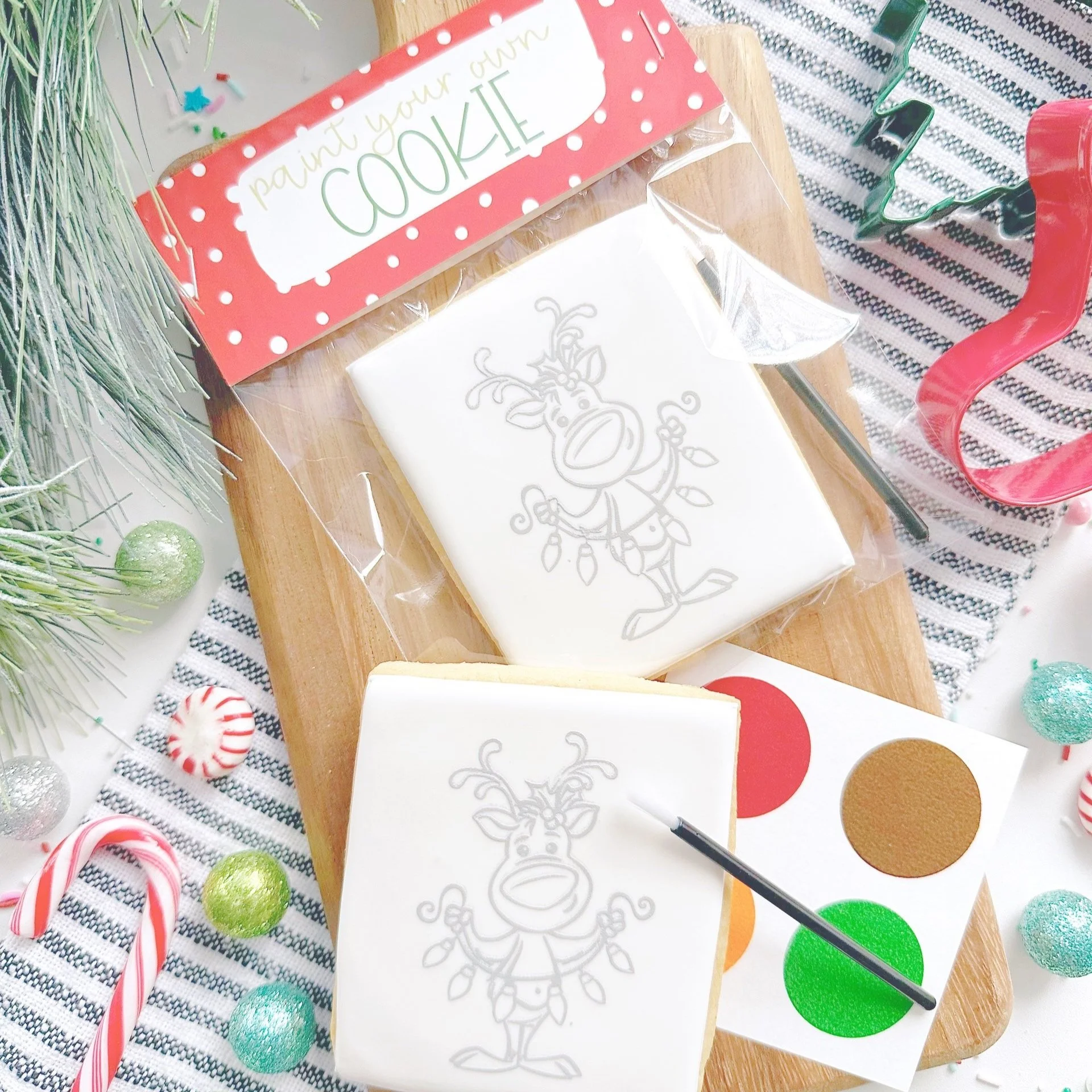 1 almond vanilla bean cookie packaged in a heat sealed bag and topped with a themed bag topper + instructions. Bag will also include edible paint palette and paint brush.